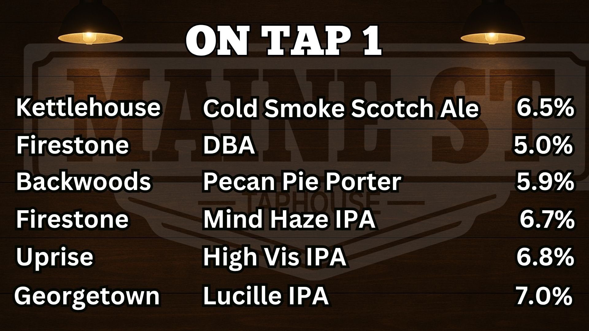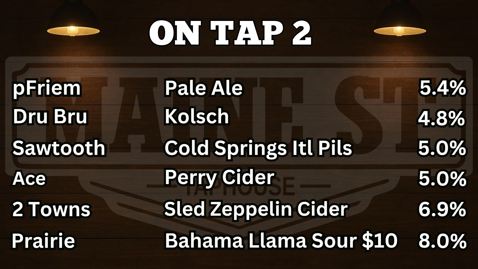 From crisp ciders to bold brews, refreshing seltzers to canned cocktails, our cooler is stocked with 80 rotating options to suit every taste—including non-alcoholic picks. Pair that with our ever-changing taps, and there’s always something new waiting for you at Maine St Taphouse.
